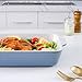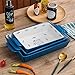 Easy to Clean -- Smooth surface prevents the stains from remaining/sticking easily. The square bakeware can be easily washed with warm water or dishwasher. High-gloss airy blue glaze will not fade for long-term use.