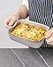 | VERSATILE & STURDY | Our bakeware is made to heat evenly and has superior heat retention, and is ideal for making casseroles, bread, lasagna, pasta, chicken, beef, pound cakes, vegetables, storing and reheating leftovers. Bake, serve, store, and reheat all in one dish! The two sizes are STACKABLE to save you cupboard space!