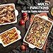 ALL-IN-ONE COOKING POT: This dish pan is compatible with all standard oven types and is heat safe up to 500 degrees Fahrenheit. You can use it to make lasagna, casserole, desserts, roasted meats, veggies, and more!