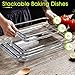 STACKABLE AND EASY TO CLEAN - Baking dish sets can be stacked to save cabinet space. Smooth glaze, easy to clean, you can wash it with soap or hot water, and dishwasher safe.