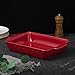 Stackable Red Casserole Dish Set - The package includes 3 different size rectangle ceramic baking dish. The smallest size is 7.3'' × 4.9'' × 1.6''. The second one is 10.5'' × 7.1'' × 2.8''. The biggest size is 13'' × 7.9'' × 2.8''. They can meet most of the baking needs and are stackale which can save place.
