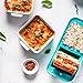 DURABLE: This tempered glass bakeware set is microwave, pre-heated oven, refrigerator, freezer, and dishwasher safe; plastic lids are BPA free and safe to clean on the top rack of dishwasher.