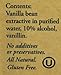 Traditional vanilla beans, purified water, 10% alcohol. Gluten-free and all-natural. NO coumarin, NO additives, NO preservatives, NO corn syrup.