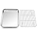 【EASY CLEAN】Mirror finish makes the small baking sheet easily release food, Electrolytic processed SS rack less stick to food, Both parts are easy clean and dishwasher safe
