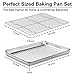 MULTIPLE USE - Including 2 baking pans(16 x 12 x 1 inch), 2 cooling racks(15.3 x 11.2 x 0.75 inch), Fit in most home ovens, Large sized sheet pan for conveniently cooking plenty of food at parties or gatherings, Great for baking meats, chicken wings, veggies, cookies, mini cakes, etc., A good choice as a gift for home chef, baking lovers at Christmas, Halloween, birthday, house warming