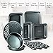 HUGE VARIETY Cover all your baking needs in one set - comes with 2 Cookie Sheets- 1 large and 1 medium, 2 Round Cake Pans, 12 Cup Muffin Pan, Loaf Pan, Pizza Crisper, Square Cake Pan, Roasting Pan, and Oven Crisp Pan. Have the Bakery in your kitchen!