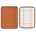 CONVENIENT COOLING RACK INCLUDED: A handy, chrome-plated, dishwasher-safe 9-inch x 14.5-inch cooling rack is included with this baking tins set.