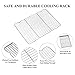 【COOLING RACKS】 Grid rack welded firmly with dense wires to keep food from falling through, Allow hot air to evenly circulate and bake quickly, Keeping meat lifted above juice and easily release, Each wire rack has 6 raised feet for great stability and 3 Cross Bars for strong load-bearing, Perfectly fit in the baking sheets