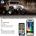 DUAL CONTROL OPTIONS - 16million RGB color wheel adjustment APP control (support IOS and Android) + small size multi-function IR controller compatible with Speed Control, Music Mode, & Strobing Function. Simple button operation, customize the speed, brightness, and colorful RGB colors of headlight.
