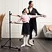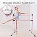 [Height Adjustment & Comfort]: With dual height adjustable ballet bars, bottom bar from 5" to 42" & top bar from 8" to 44", you can easily adjust by fastening knobs to meet dancers of different ages & height as well as accompanying the growth of your girls; Features a soft sponge sleeve for comfy training experience & protecting your legs from hurt