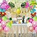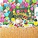 153Pcs Tropical Hawaiian Luau Party Decoration - Summer is coming, we have carefully prepared a set of luxurious luau party decoration supplies. It includes a giant grass table skirt (108"*30"), 1 box, 31 latex balloons, ALOHA foil balloons, 24 straws, 24 umbrella toppers, 24 hawaii cupcake toppers, 24 hibiscus flowers, 12 palm leaves, 1 pineapple honeycomb, 2 coconut palm Tree foil balloons, 100 dots, ribbon, balloon chain. It can totally meet your party needs and bring a lot of joy.
