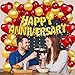 ANNIVERSARY DECORATION KIT TO MAKE YOUR ANNIVERSARY MEMORABLE : Ensemble of 71 red, black and gold heart, metallic balloons with beautiful happy anniversary banner are just perfect to surprise your wife/husband and make your anniversary celebration special.
