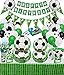 VALUABLE PACKAGE: 24 x 9" dinner plates, 24 x 7" dessert plates, 24 x spoons, 24 x forks, 24 x knives, 24 x cups, 24 x Drinking Straws, 48 x table napkins, 24 x invitation cards, 24 x gift bags, 30 x pure color balloons ( green, white, black 10pcs/color ), 5 x soccer pattern latex balloons, 4 x soccer foil balloons, 2 x tablecloth, 1 x GOAL soccer bunting flag, 1 x HAPPY BIRTHDAY soccer banner garland.