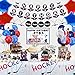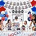 Hockey Party Decorations Include: 1 x HAPPY BIRTHDAY banners, 1 x ice hockey pattern garland, 1 x hockey theme tablecloth, 1 x DIY name hanging sign, 4 x hockey honeycomb centerpieces, 4 x star foil balloons, 10 x hockey theme cupcake toppers, 20 x hockey pattern latex balloons(4 different colors, 5Pcs/color). Package comes with glue points and balloon ribbons.