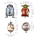 Package including: 1× 23 inch Baby Child the Foil Balloon,1×19 inch R2D2 robot Foil Balloon,1× 18 inch BB8 robot Foil Balloon,12× 12 inch Black Star Wars Video Games Print Latex Balloons and 2× 19 inch Silver Star Foil Balloons. Perfect for star wars theme party decoration