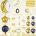 Abundant Stars and Moon Party Decorations: there are 113 pieces of balloon garland kits, including 1 gold moon balloon, 3 gold star balloons, 3 blue round foil balloons, 103 latex balloons (confetti, blue, gold, white), 1 strip, 1 glue point dot and 1 balloon ribbon, sufficient to meet your decorative needs and replacements