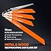 【Package Includes】 7pcs metal reciprocating saw blades (9”*14TPI*1pcs, 6”*10TPI*2pcs, 6”*14TPI*2pcs, 6”*18TPI*2pcs), 8pcs wood pruning reciprocating saw blades (9.5”*5TPI*1pcs, 6”*6TPI*7pcs).