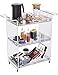 【SOLID & DURABLE CONSTRUCTION】 - The frame of this serving cart is made of solid iron, so it is strong enough to be used for a long time. Both shelves are covered with protective waterproof vinyl, and each shelf has a load-bearing capacity of up to 44 pounds, which can carry more things.