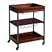 Packed with Storage Options: 4 bottle holders, 2 glass stem holders, a large surface, and a bottom shelf. This serving cart with storage is ready to display wine, spirits, mixers, barware, and all the other happy hour essentials