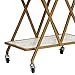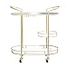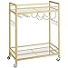 IRON FRAME WITH ROLLING CASTERS: Constructed of iron, the frame of this bar cart is made to be incredibly durable, ensuring that this piece will hold up under heavy use. Refined with a stunning gold finish, this frame brings an elegant touch to this piece. This is fashioned with rolling swivel casters for convenient mobility and are finished with brakes to ensure that your cart stays in place.