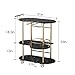 [Ample Storage]-The gold bar cart has 3 rows of glass holders and 1 wine rack under the top shelf, hold up to 9 goblets and 4 wine bottles. In addition, 2 open shelves provide ample space for tableware, fruit plates, snacks and ice buckets.