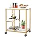 MOBILE SERVING CART: This gold serving cart features a compact frame with a handle that easy to steer directions or place your towel. Its 4 swivel castors make the kitchen cart easy to move around and 2 of them are equipped with brakes, keeping the bar cart stay in the place you want.