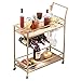 [Solid Construction]-The home bar serving cart features with golden surface metal frame and tempered glass shelves, which is durable and lasts a long term use. The top shelf can accomodate up to 200lbs. Dimension: 31.4”D x 15.7”W x 35.8”H