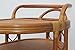 SERVING CART: The handmade natural rattan bar cart looks like an actual tropical treasure. Rattan poles are finished with a subtle sheen that adds to the found look. Casters complete this party-ready piece.