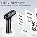 [Fast and Precise Scan] The rechargeable barcode reader uses the superior CMOS sensor and image scanning technology to greatly improve the decoding speed of barcodes. Distance is not a problem anymore, this scan´s recognizing precision can go up to 4mil so you can work more efficiently. There are 3 scanning modes provided, including manual trigger mode, continuous scan mode, and auto-sensing mode.