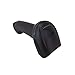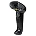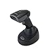 Black handheld barcode reader with standard-range focus scans 1D, PDF, 2D, postal, and OCR barcodes
