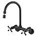 [Function]: This adjustable wall mounted faucet is perfect for a laundry sink. Double handle 6 inch center 2 hole wall mount faucet can easy control cold and hot water.The 4 inch spout can rotate 360 degrees.