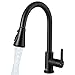 💙Commercial kitchen faucet 💙 Matte black kitchen sink faucets with pull-down spray. Single bar design for easy and precise control of water flow size and temperature.