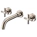 Modern wall mount bathroom faucets in brushed nickel finish resist corrosion and tarnishing,exceeding industry durability standards
