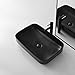 ★【Smooth durable & Easy to clean】The rectangle vessel sink edges are polished to make it smooth and not easy to touch water, which can effectively prevent scratches. The high-quality baked glaze makes the sink bowl easy to clean, low water absorption, and dirt is not easy to stick, just wipe the surface of the sink with a damp cloth to keep it beautiful.Matte black element design,the beauty of classic simplicity,creating a fashionable home life.