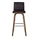 Indulge in luxury with the Vienna contemporary swivel barstool by Armen living. It is beautifully designed with a sturdy metal framed footrest in expertly crafted in curved walnut wood finish, upholstered with brown faux leather and walnut back. This piece provides both versatile style and comfort with a mid-century modern design that can easily be integrated into your homes current decor. Available in 26" counter Height and 30" bar Height in brown and grey.
