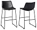 MID-CENTURY INSPIRED: These counter-height bar stools with bucket seats upholstered in french black faux leather upholstery and tubular metal bases in a black finish have a charmingly vintage tone