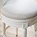 STYLISH: The stool features a rustic gray wash, antique white or weathered gray finish, and a bonded leather or light and dark gray polyester ticking fabric upholstered seat and back, brushed nickel nail head trim, and detailing on the legs. This neutral bar stool is sure to complement any décor.