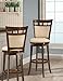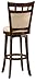 Transitional wood swivel bar height stool with upholstered high back and seat