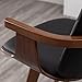 Walnut wood exterior with brown upholstery accent and open curved cushion back design for cool breathable seating
