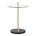 SILVER POLISHED FINISH: Round accent table showcases a textured aluminum body with pock marks in a glossy metallic gold finish, with an opaque black glass table top
