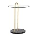 FEATURES ROUND ACCENT TABLE: Silver end table carries a beautiful sculptural base that features dripping metal silhouette that serves as a striking embellishment and a solid structure with dark glass top