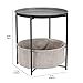 Circular metal accent table with tray top and secondary fabric storage bin underneath
