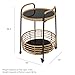 【Abundant Storage Cart】Unique style furniture Featured with 2-tier spacious rolling utility cart ( each measures 15.75''W ×12.6''D × 18.7''H), providing enough space to store bar essentials, coffee, wine, whiskey, food, books, lamps, office supplies in living room and decorative collections in your house.