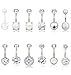 [PRETTY OUTLOOK] 12 pcs different belly rings, synthetic opal, marble stone, cz and crystal ball, cute and dainty, twinkling jewelry accessory for women and teen girls.