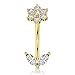 【DESIGN】: 14K Solid Yellow Gold Delicate Cute Small Navel Rings Features Sparkling Petal Navel Piercing.10mm Curved Belly Bar.