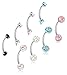 UNIQUE DESIGN--8Pcs 316L Surgical Steel Eyebrow Piercing Ring, Clay Balls and Round CZ in Both Side, Curved Barbell Design, Both Side Can Be Screw off