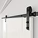 Outlook: Rustic hardware suitable for indoor decoration such as kitchen, bedroom, dressing room, club, pub and so on. Waterproof and corrosion resistant hard track kits Useful door accessories for warehouses. Attractive matte black finish. Add a beautiful touch to your room with carbon steel barn door hardware.