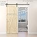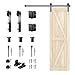 PREMIUM MATERIAL BARN DOOR HARDWARE KIT: Solid natural fragrance spruce wood board certified by FSC safe to use, has good sound and heat insulation functions, good paint coloring performance without any broken or crack; unfinished door can be stained or painted to any finish/color you like to suit your home. Hardware is made of high quality steel in high temperature fine black powder coated surface ensures anti-corrosion and durability.