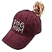 Adjustable plastic buckle back closure,Six panel construction with eyelets.Also Embroidered Ponytail Hat