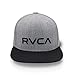 Men's Snapback Hat, Mid fit, 5 panel, Structured front, Snapback closure, Woven patch at front panel, Interior RVCA fit label, Exterior flag label at back, Material: twill.